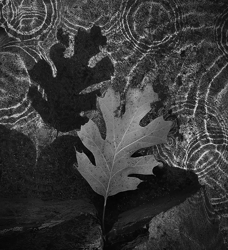 Black and White – “Floating Shadow Leaf” by Robert Arnold