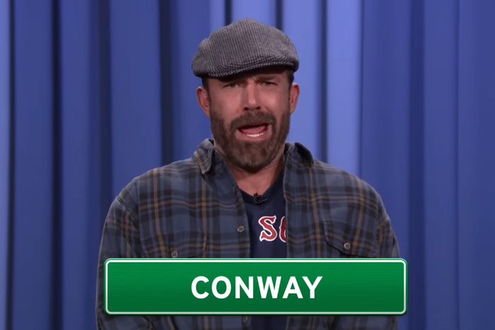 Boston: It’s a fertile source of drama but also comedy. This is well-worn territory, sure. One of Jimmy Fallon’s most enduring SNL bits was the Boston Teens. And Seth Meyers’s Boston Accent–trailer sketch on Late Night is an all-timer. Still, having Ben Affleck (raised in Falmouth), Matt Damon (Cambridge-born), and Jimmy Fallon (grew up in New York State, gifted impressionist but stolen valor all the same) say every single town and city in Massachusetts fucking hits. Affleck especially appears to enter some sort of Masshole flow state hitherto unknown by man. He rattles off the towns kind of like he’s Hamilton in Hamilton? It works, is what I’m saying. His barbaric yawp of “Yarmouth!” would make Walt Whitman (died in Camden) proud.