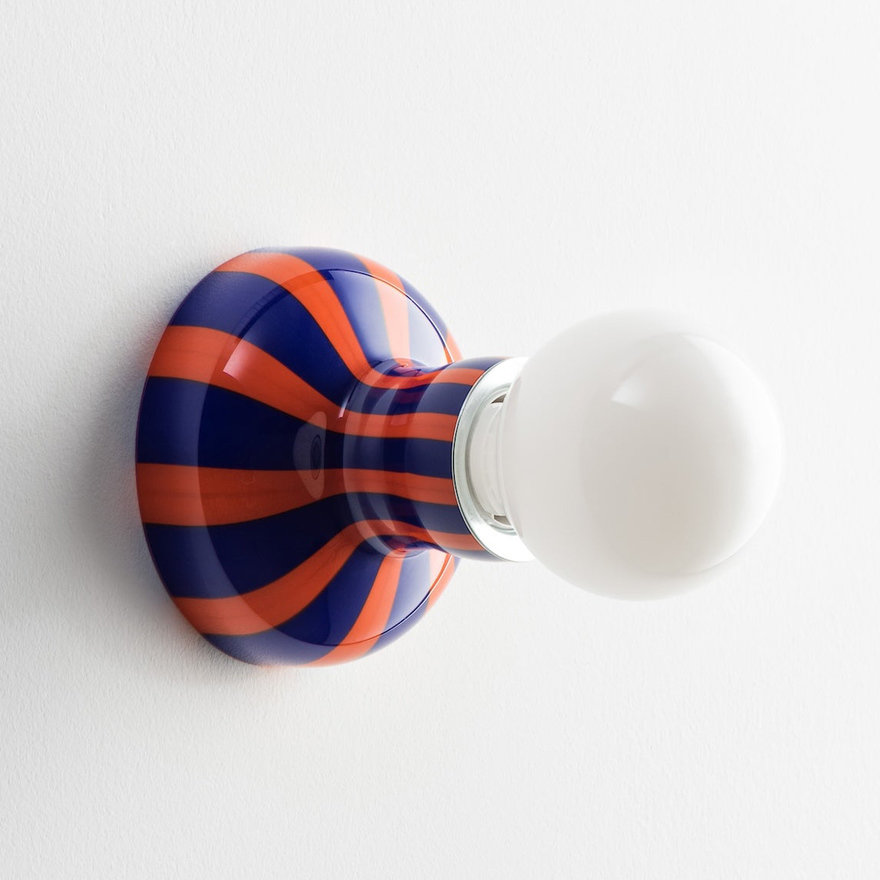 This bi-color Ultras Sconce by 6:AM Glassworks is blown from a single piece of glass. And yields a cut-off that is also saleable.