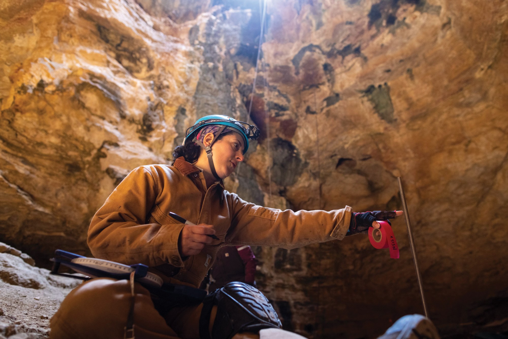 Julie Meachen, a vertebrate paleontologist from Des Moines University in Iowa, has led a Natural Trap Cave research team since 2014. At the start of her first field season, she bumped up a rough four-wheel-drive road to the cave, where an experienced caver set up a rope system. “I was a little intimidated by rappelling in 80 feet,” she told me. “I had never done anything like that before.”