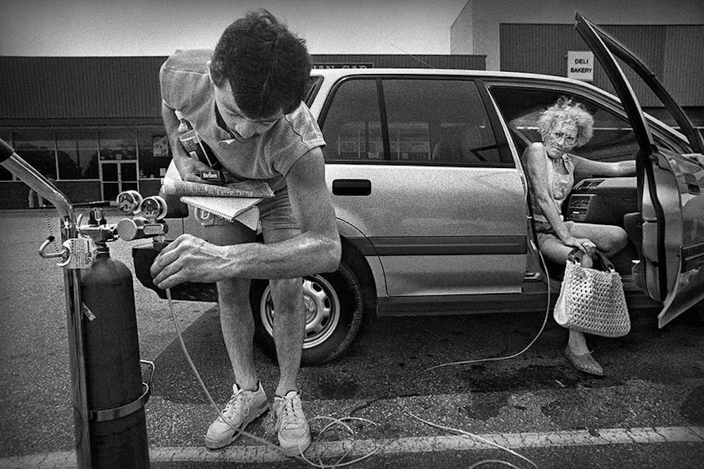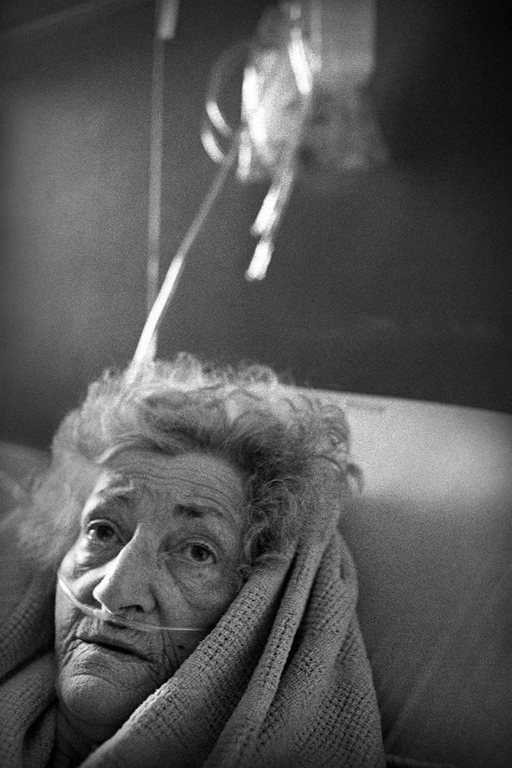 “As it became clearer that my mother’s final months were near – she spent half of her final year in emergency rooms and ICUs, breathless, frail and afraid – I was forced to confront two obvious futures: I could stay the course and ‘finish my work’ as she died, and I’d have a complicated and intimate book to show for my long ‘travail’. Or, I could cease and desist my grim project, forget the whole damned thing, and join her in her final season as a son and companion, and experience her death as nakedly as possible, and send her off with a kind of dignity. I’m sorry to admit, the decision wasn’t easy, or quickly made. But I decided, after all, to stop making pictures of her on New Year’s Eve, 1990, while she rested uneasily in a room in the Pulmonary Ward at Mission Hospital in Asheville, North Carolina.”
