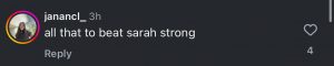 “All that to beat Sarah Strong,” one commenter joked.