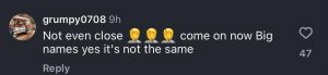 “Not even close 🤦🤦🤦 come on now. Big names yes, it’s not the same,” another added.