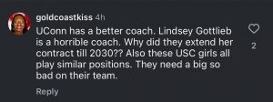 “These USC girls all play similar positions. They need a big so bad on their team,” another pointed out.