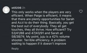 “This only works when the players are very efficient… JuJu is a 42% volume shooter. Terrible efficiency,” one fan argued.