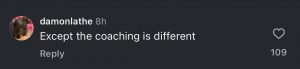 “Except the coaching is different,” another replied.