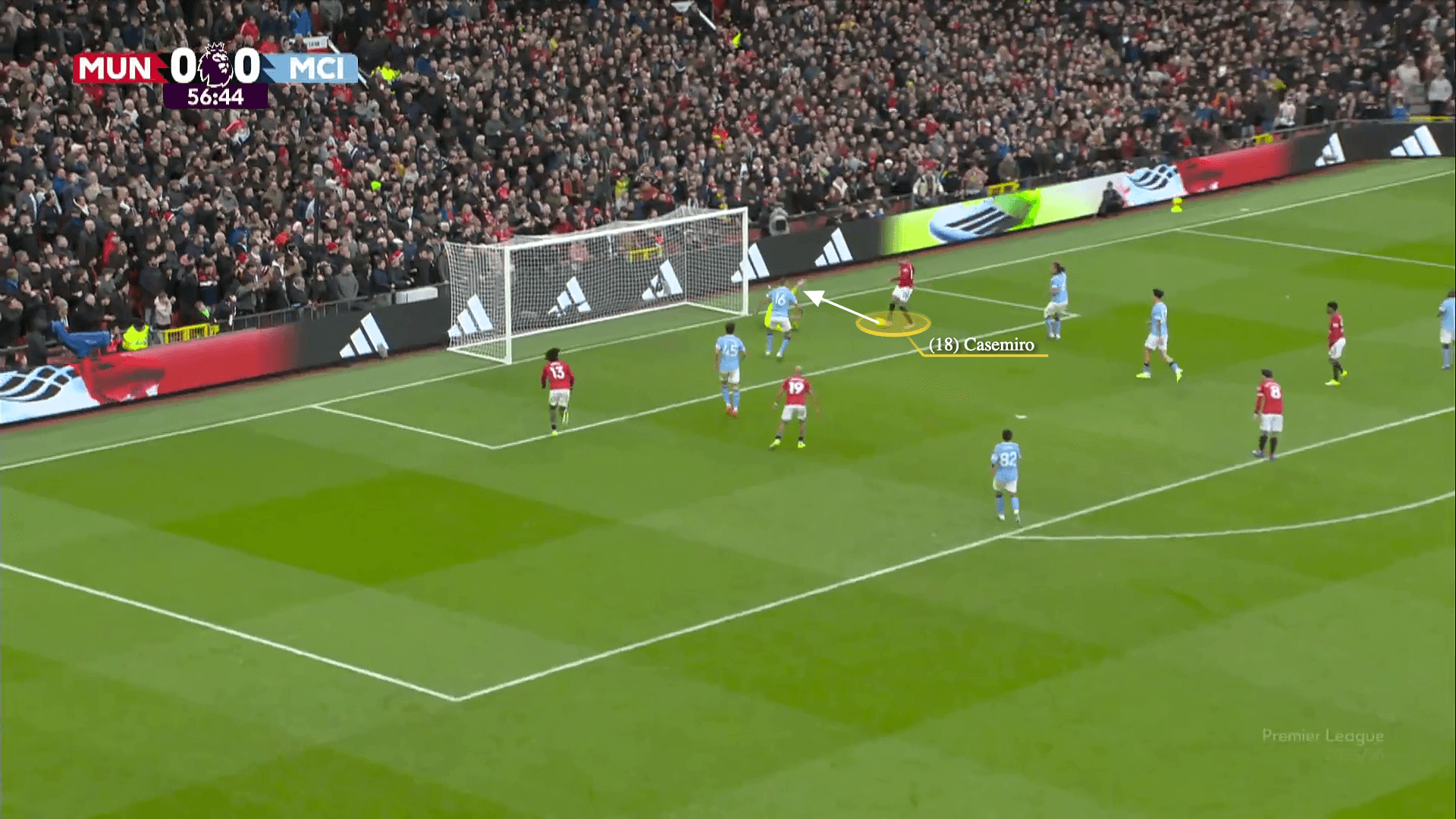 City’s goalkeeper then makes a second save to deny Casemiro from scoring.