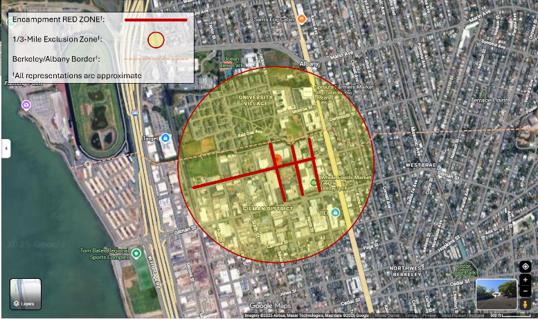 Health officials have recommended people take precautions if they pass within 1/3 of a mile of the outbreak’s epicenter, at Eighth and Harrison streets. Credit: City of Berkeley
