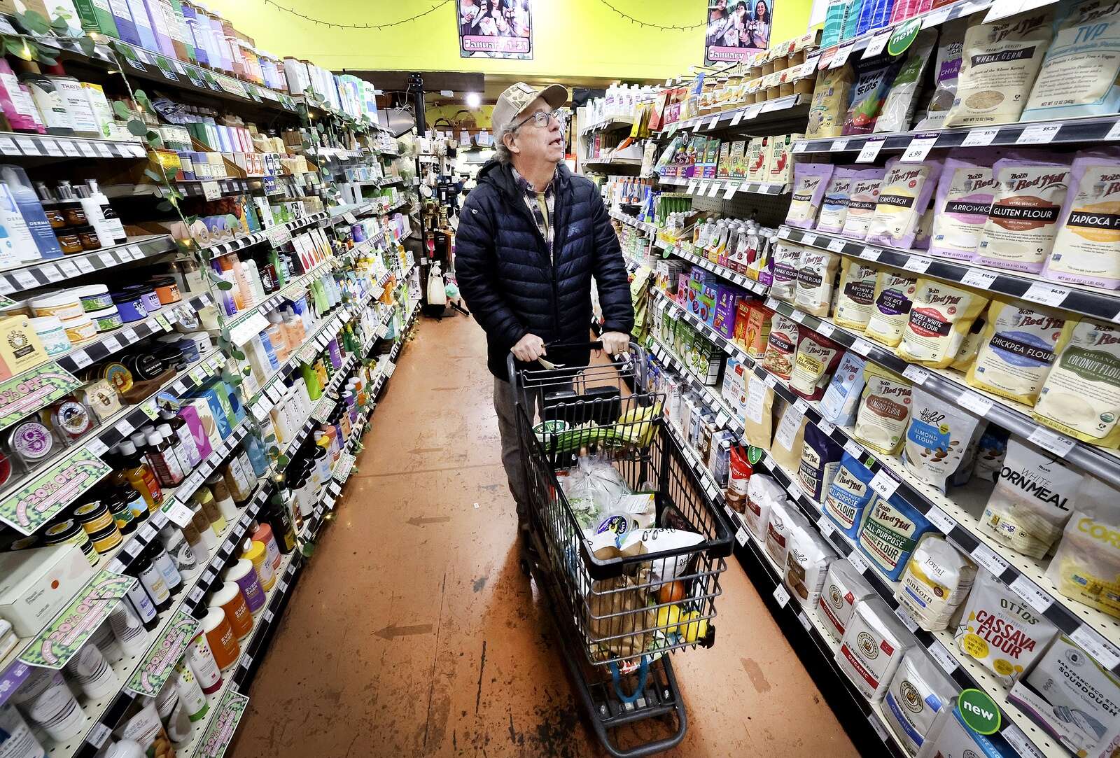 Curt Brown shops for groceries at Durango Natural Foods Co-op on Friday, passing up on the asparagus at $11 a pound, saying that was too pricey for his taste. (Jerry McBride/Durango Herald)