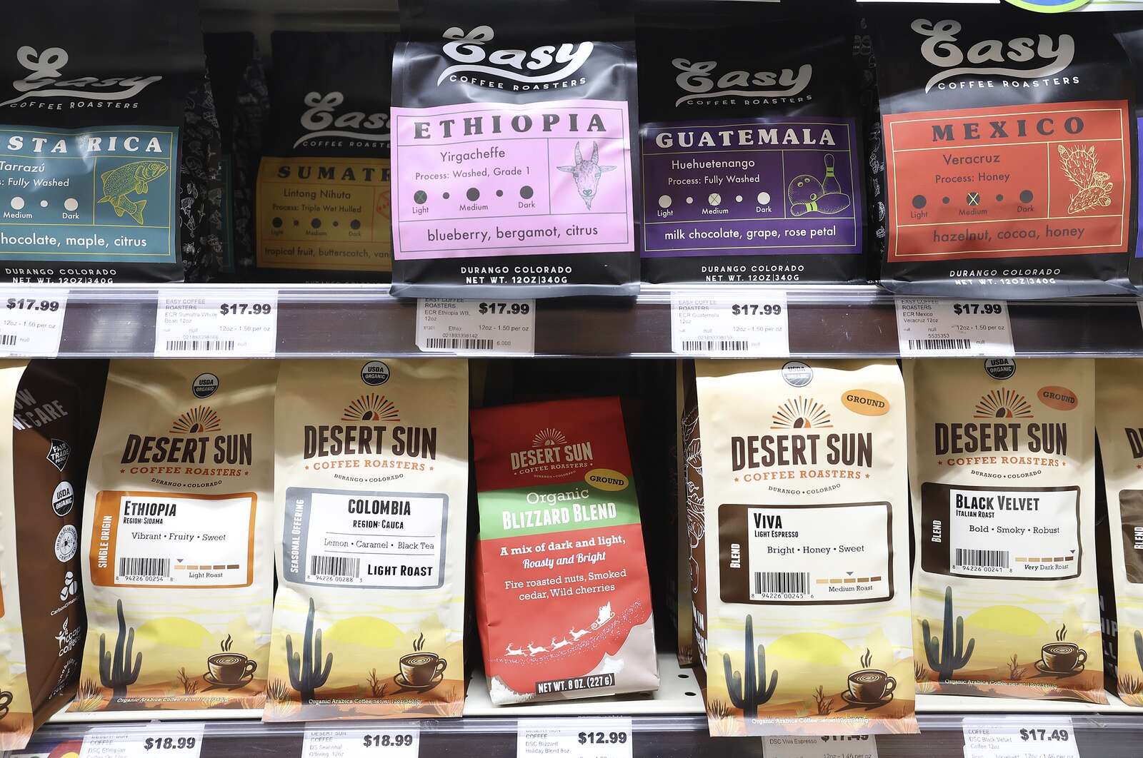 Coffee prices have steadily increased at Durango Natural Foods Co-op on Friday as well at other retailers. In a K-shaped economy, higher income earners aren’t necessarily impacted by higher groceries. But lower-income earners struggling to make ends meet month-to-month are more likely to feel the burn in their pocketbooks. (Jerry McBride/Durango Herald)