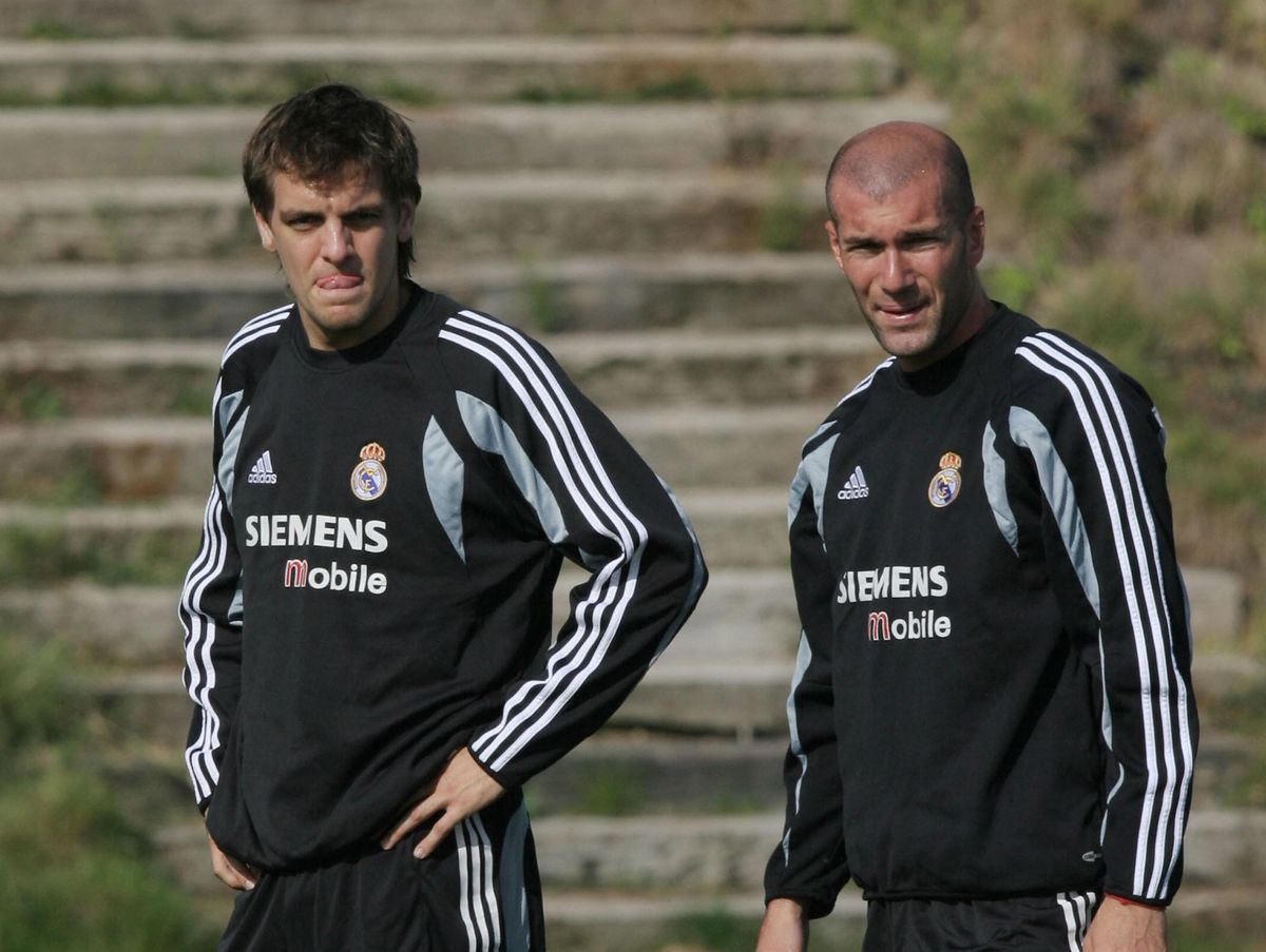 Woodgate and Zidane during Madrid training in 2004.(Image: 2004 AFP)