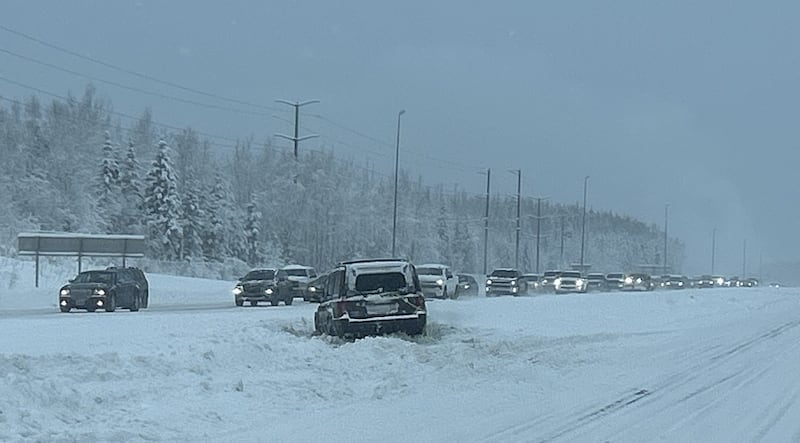 Videos circulating on social media showed dozens of vehicles off the Glenn Highway while others reported that their vehicles struggled to navigate messy main roads and side streets in Anchorage.