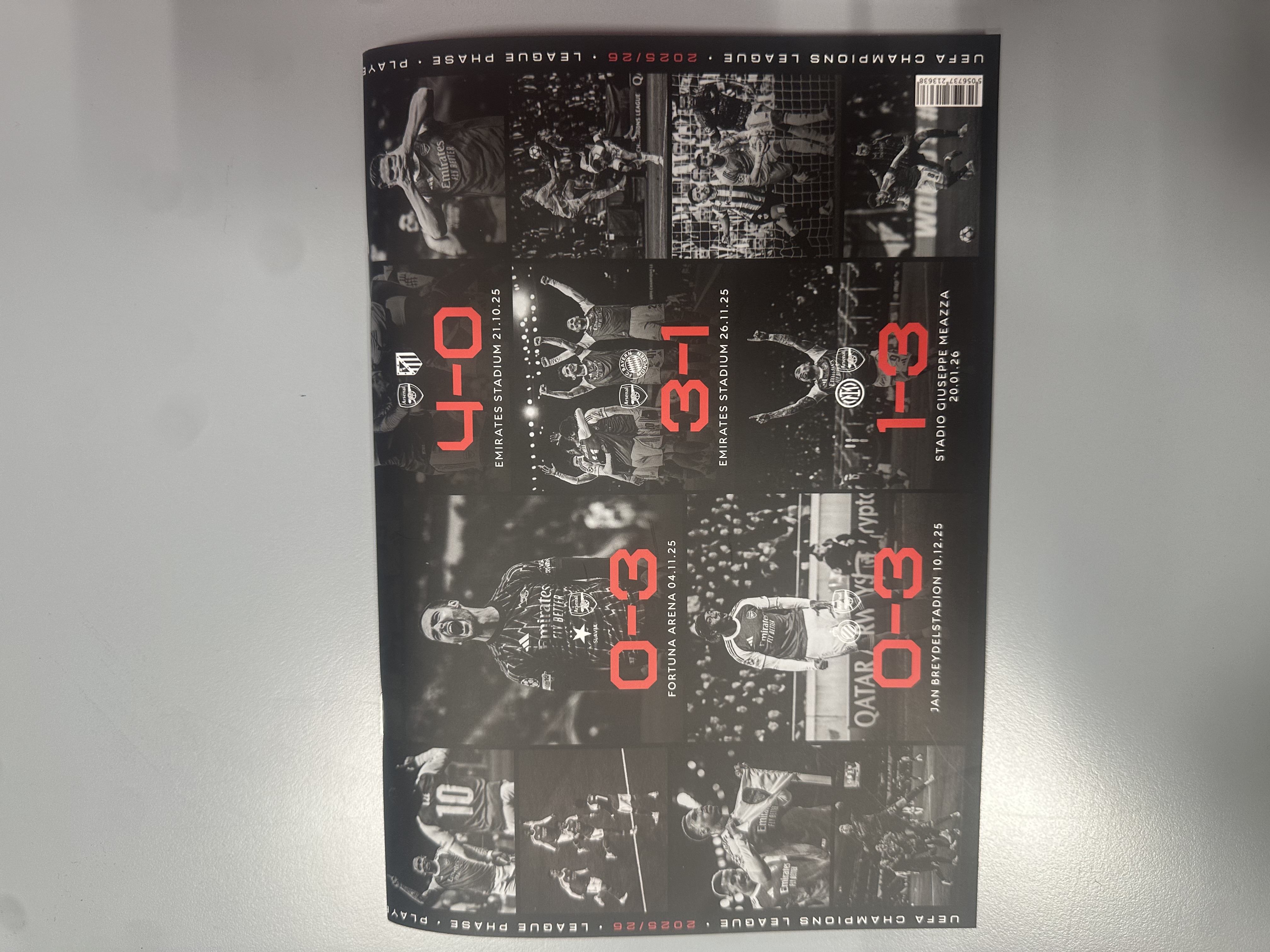 Arsenal are reminding fans of their Champions League record on the front cover of the programme….