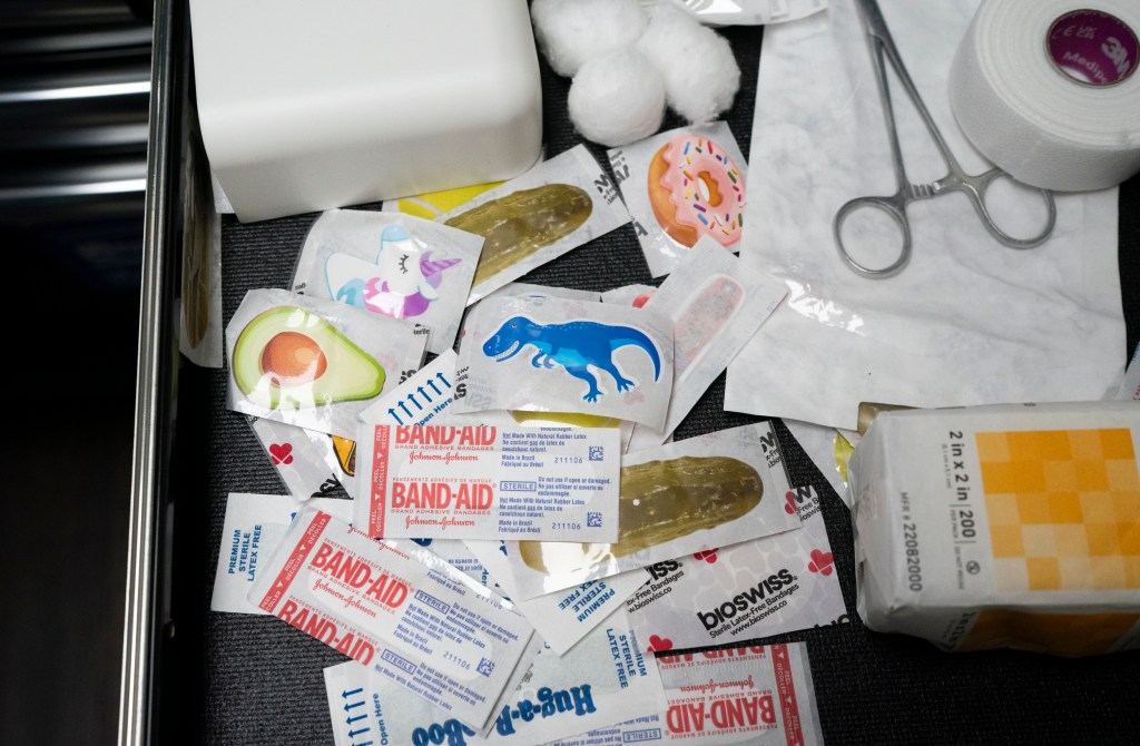 Unique Band-Aids seen Jan. 23, 2026, inside a medical drawer inside an exam room at Traders Point Pediatrics in Indianapolis. Credit: Stephanie Amador for Mirror Indy