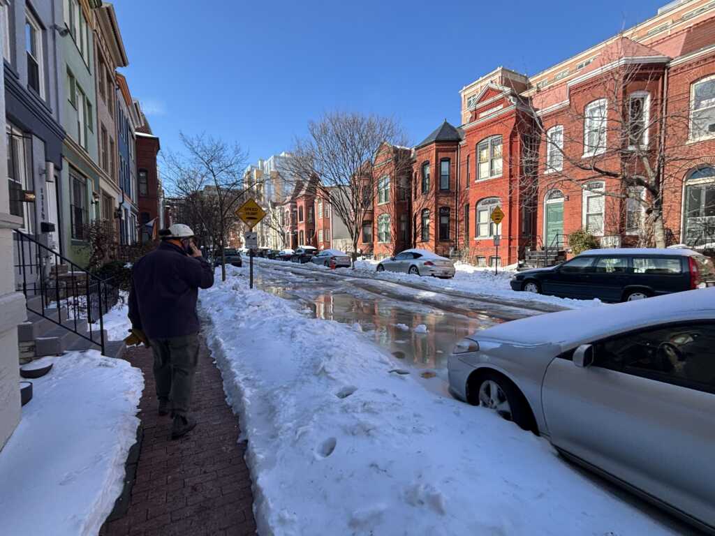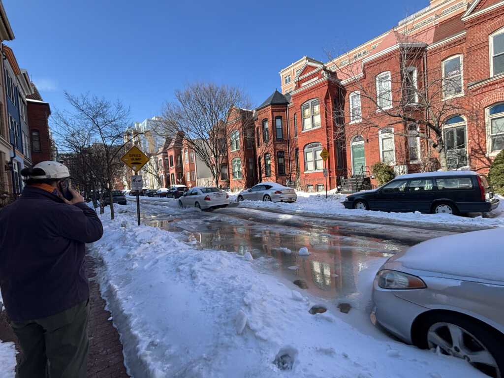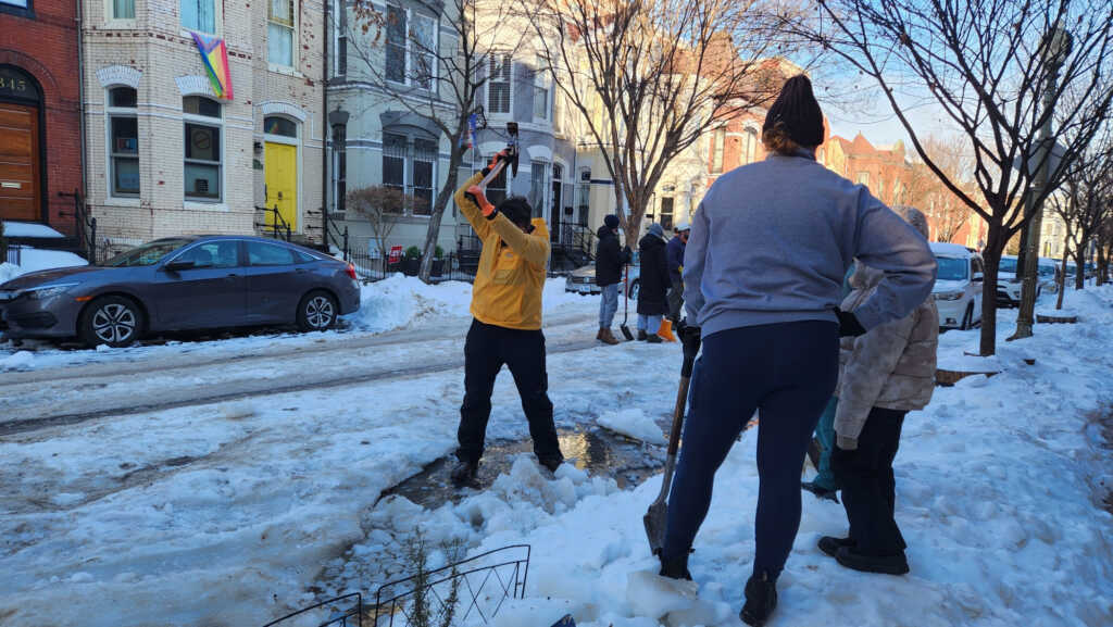 “Wallach Place residents out in force, employing every possible shovel and tool, even pick-axes, clearing ice to allow DC Water crews to get water main access.”