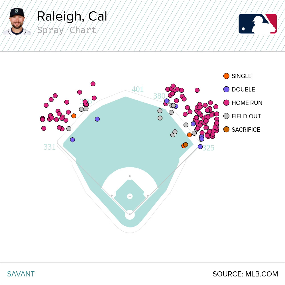 With the switch-hitting Raleigh’s spray chart as evidence, you can see that good things tend to happen on these.