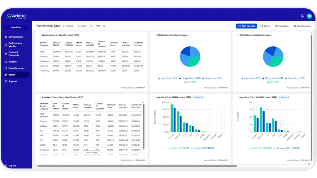 And the kicker: you can click through to see exactly why Merlin AI reached its conclusion. What model it used. What data informed the output. What logic chain it followed. This is the difference between healthcare AI and what Arbital calls Actuarial AI, a new category where the AI doesn’t just tell you what to do but shows you why, with the rigor and transparency an actuary would demand. Finance teams can report on it. Compliance can audit it. Your chief actuary can trust it.