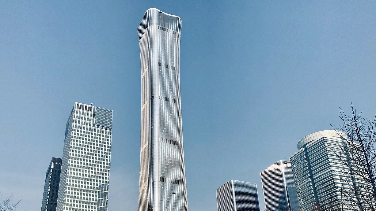 CITIC Tower, often called “China Zun,” draws inspiration from an ancient ceremonial vessel. Its distinctive shape widens at the base and crown, creating a strong architectural identity. The tower stands as Beijing’s tallest completed building.