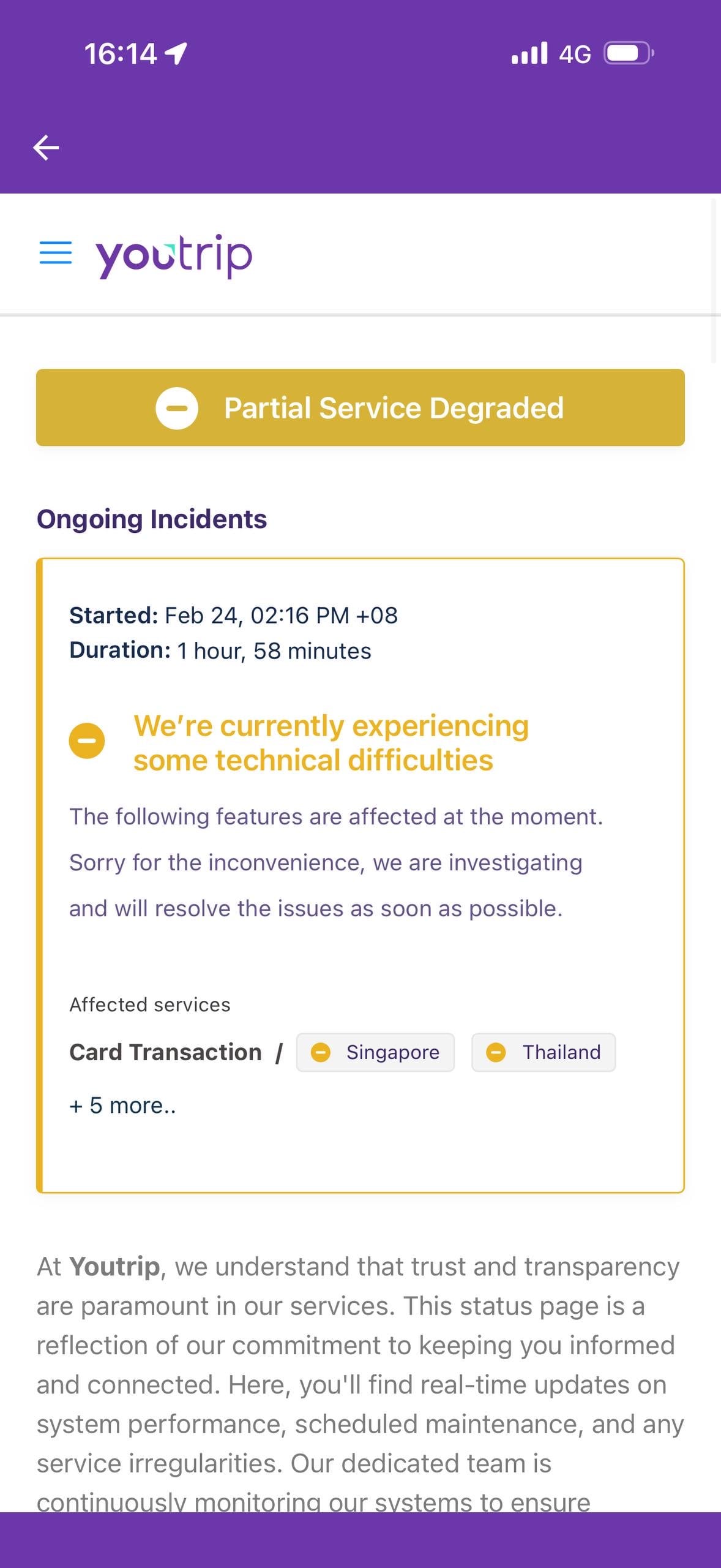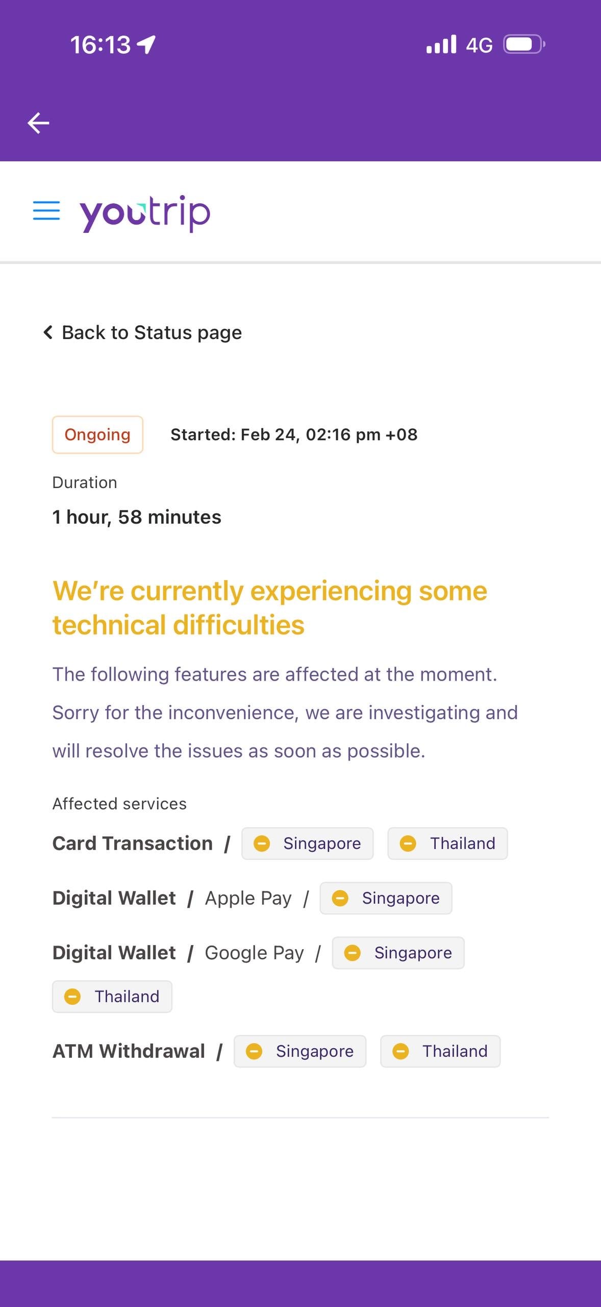 That was when he spotted a notice on the YouTrip app, informing users that there were technical issues that were in the process of getting resolved.