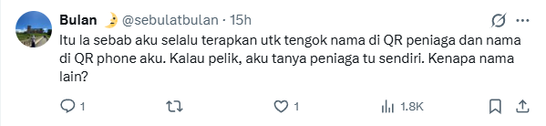 “This is why I usually check the vendor’s name on the QR and the name in the QR on my phone. If it is weird, I will ask the vendor myself,” said netizen @sebulatbulan who was following the post on X.