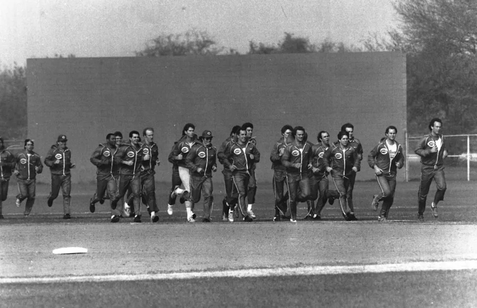 MARCH 1984: Running workout during Cincinnati Reds spring training.