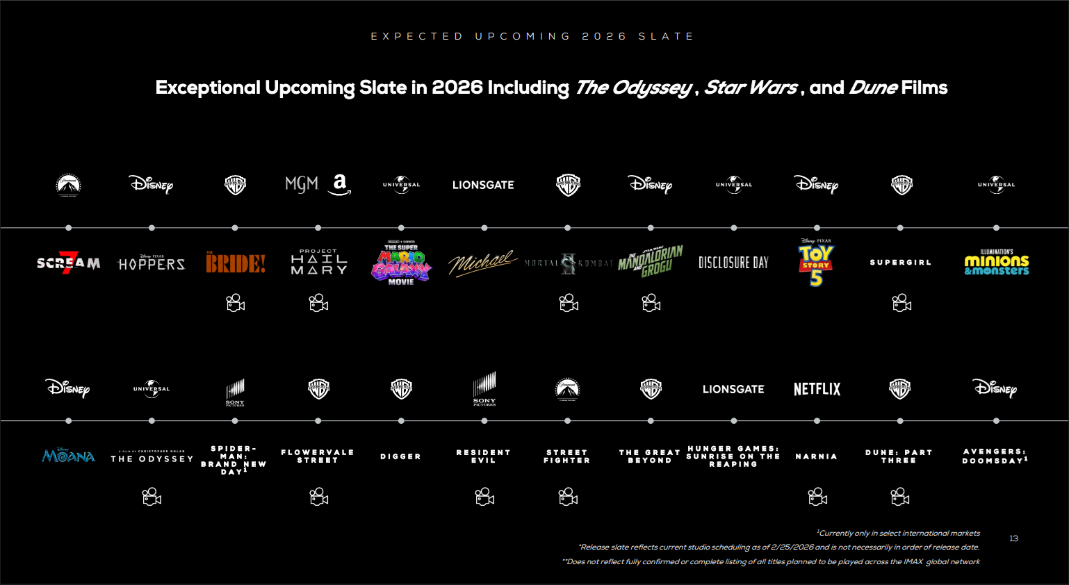 To begin with, we already know that this year’s Star Wars: The Mandalorian & Grogu will receive several weeks of IMAX support starting on May 22, with that run wrapping up prior to the release of Steven Spielberg’s Disclosure Day on June 12. That would leave potentially three weeks where the film will have the format exclusively to itself. The movie itself has multiple scenes that were filmed using the IMAX format to take advantage of it in a way that the show simply does not. You can look at the full slate for 2026, as it exists right now, below: