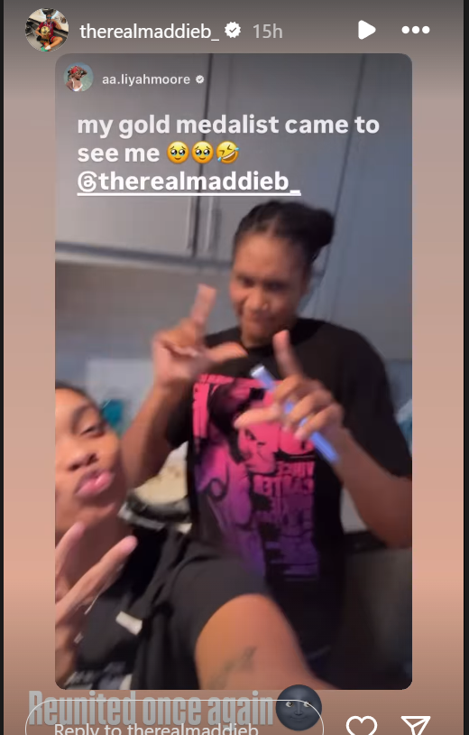 “my gold medalist came to me @therealmaddieb,” wrote Aaliyah Moore.