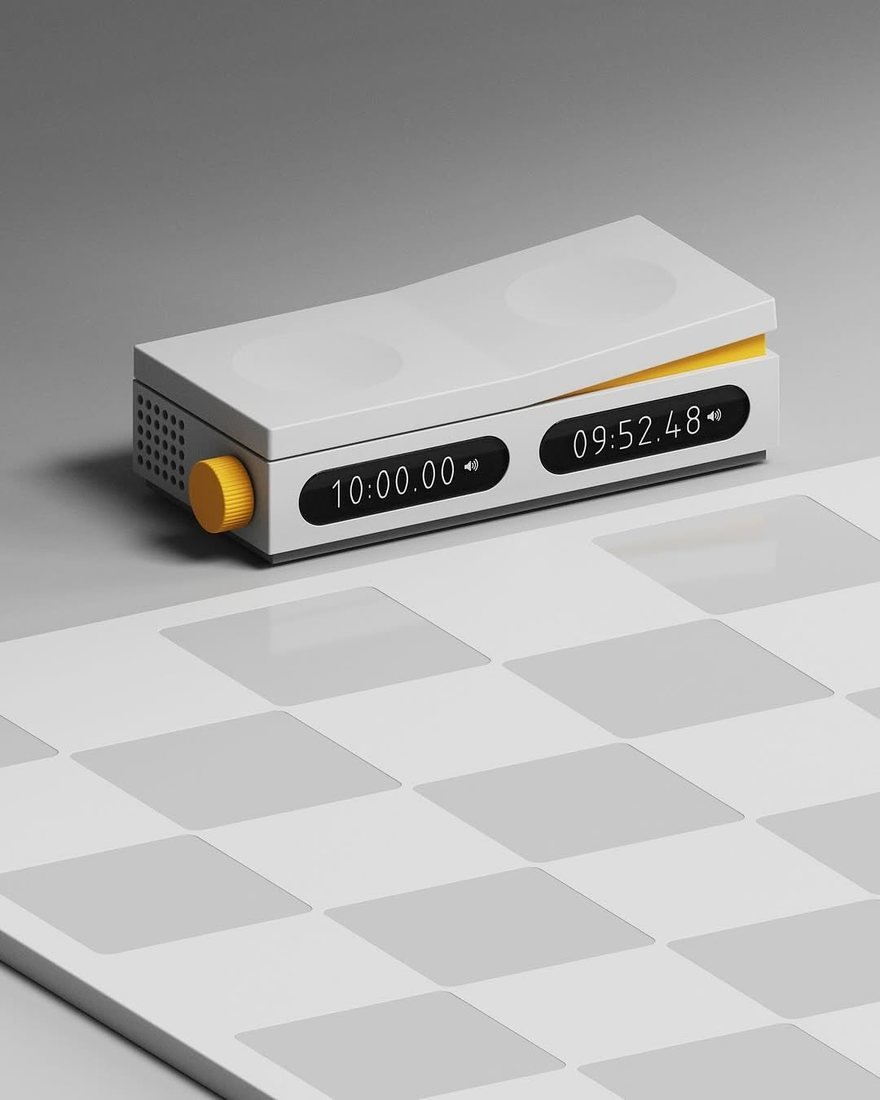 This Tempo chess clock is by L.A.-based industrial designer Mike Jacobs. It channels the spirit of both vintage Braun and modern-day Teenage Engineering.