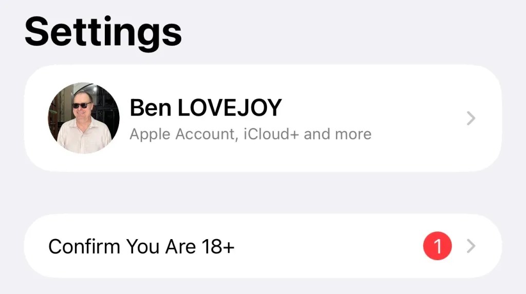 A new link will appear in the settings app for UK users after upgrading to iOS 26.4. This is labeled “Confirm You Are 18+.”