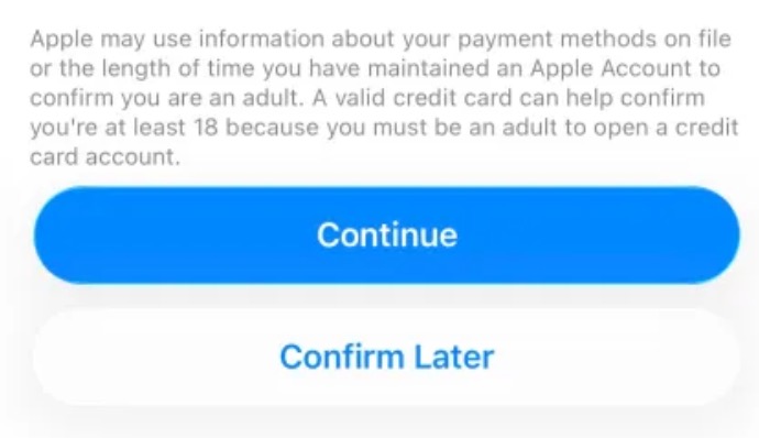 When you tap on this, a screen tells you that Apple may be able to automatically verify your age.