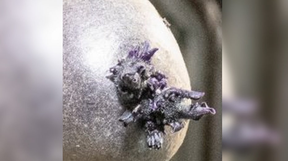 “I flew potatoes on Expedition 72 for my space garden, an activity I did in my off-duty time,” astronaut Pettit said. “This is an early purple potato, complete with a spot of Velcro hook to anchor it in my improvised grow light terrarium.”Â