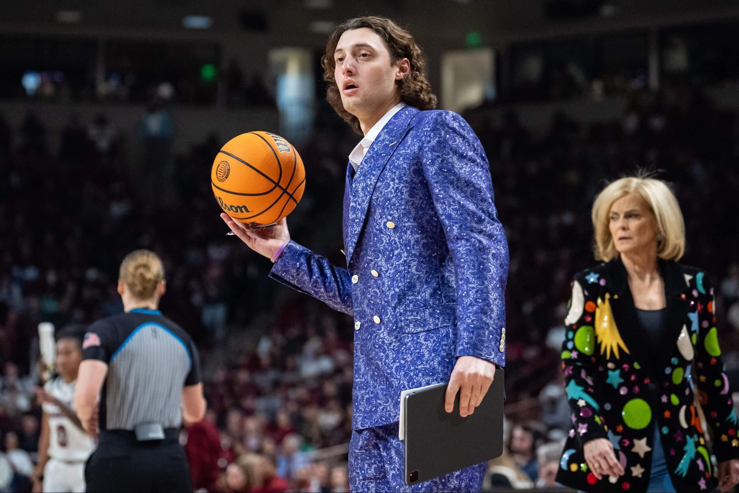 It’s not just Mulkey who’s dressed to the nines every time LSU takes the court, with her feathers, sequins or bold patterns making her fits must-see Internet content this time of year.