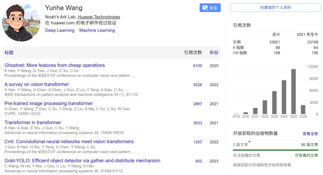 As a senior researcher and engineer, Wang Yunhe has a very impressive academic resume, and his Google Scholar citation count has exceeded 33,000.
