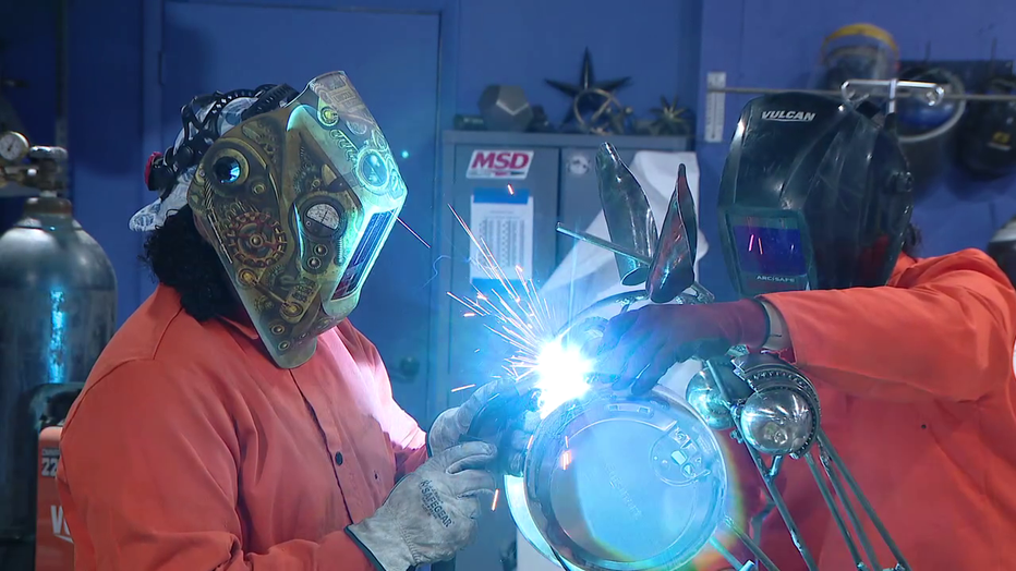In addition to creating art, many of the workers at the studio work on various metal fabrication projects throughout the area.