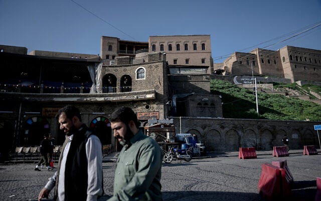 Iraqi Kurds walk near Citadel in Erbil, the capital of Iraq’s autonomous Kurdish region on March 18, 2026, ahead of the Eid al-Fitr celebrations. (Ozan KOSE / AFP)