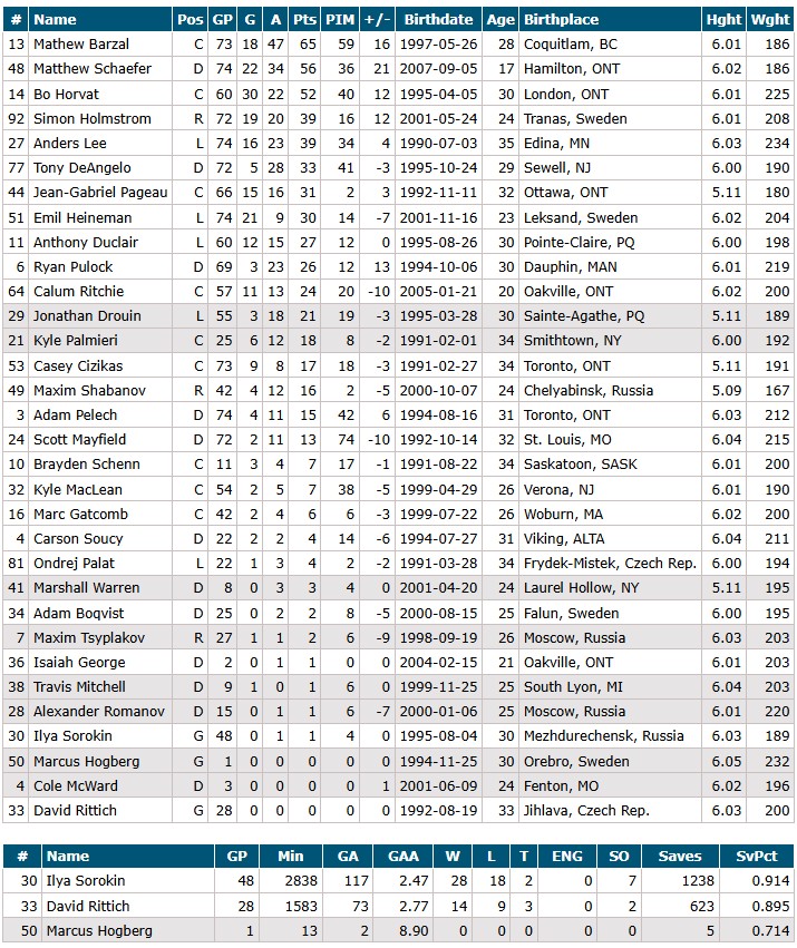 One Darche move that does look promising was getting Calum Ritchie to the Island in the Brock Nelson trade. Ritchie is a pretty solid NHL player in only his draft+3 season and has a lot of upside to grow into. Other than someone like Barzal it’s been a while since the Isles have developed a talented, young scoring forward (though I guess Simon Holmostrom going on his second-straight 20 goal season might have something to say about that).Heineman with a 21-9 goal/assist split might be on his way for a Cy Young this season.