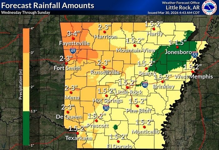 There is relief on the way this week. The National Weather Service in North Little Rock says north central Arkansas can expect between one and three inches of rain between Wednesday and Sunday.