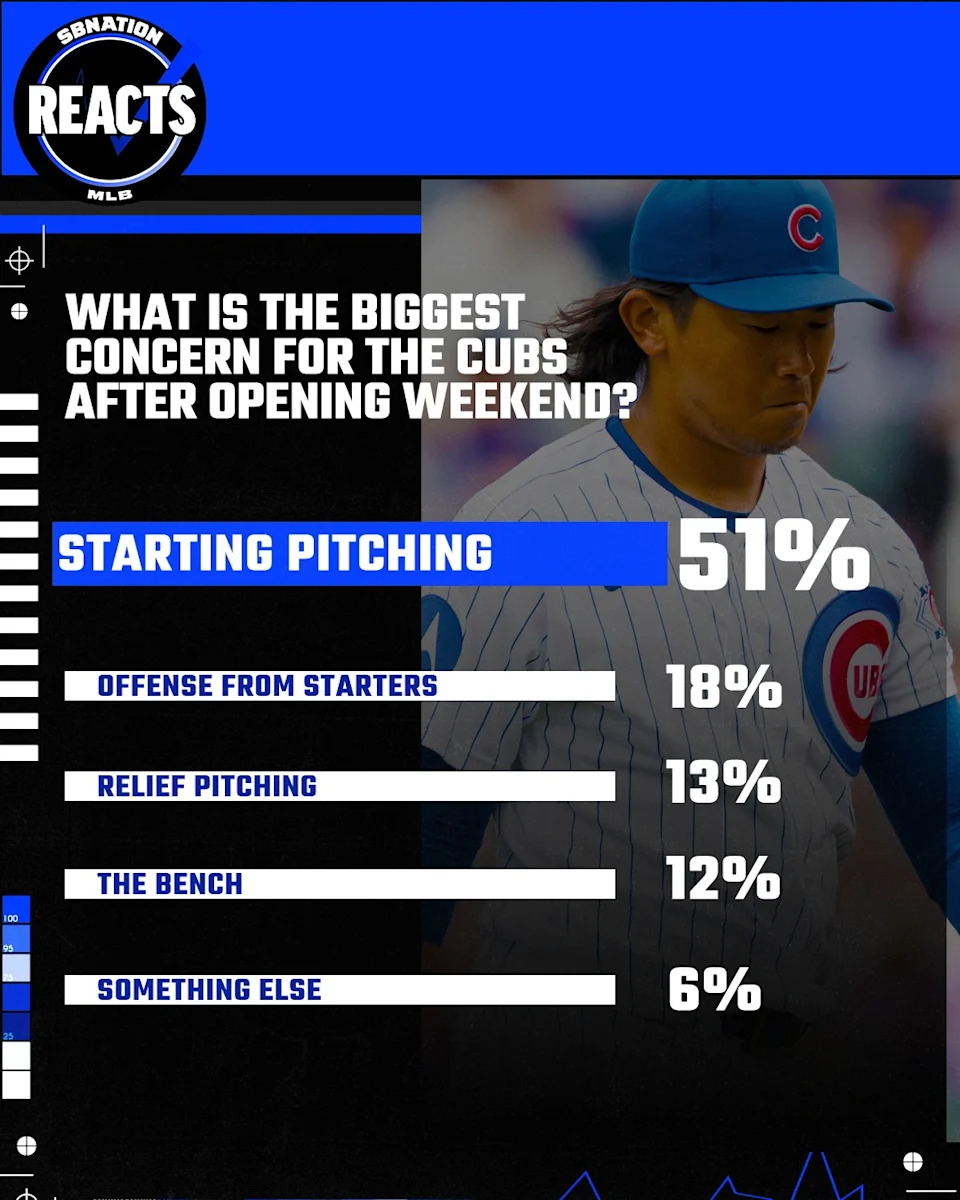Earlier this week, I asked you what your biggest concern is about the Cubs. It’s very early in the season, but a small majority of respondents in the SB Nation Reacts survey said it’s the starting rotation: