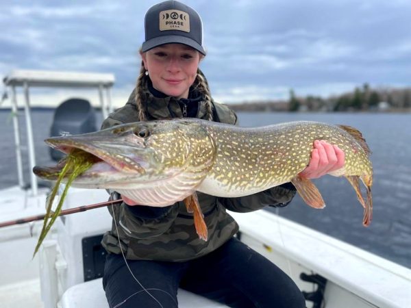 Courtney holds a large northern pike from the Belgrade Lakes. Credit: Courtesy of Ryan Brod