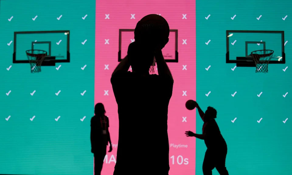 Matthew Valich of Los Angeles plays a game Saturday, April 4, 2026, during the 2026 NCAA Men’s Final Four Fan Fest at the Indiana Convention Center in Indianapolis.