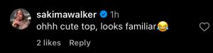 “Ohh cute top, looks familiar,” said Sakima Walker.