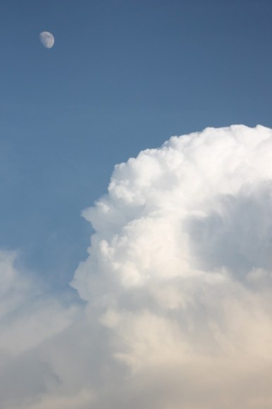 The moon with a group of puffy clouds over the skies of Levittown. File photo.