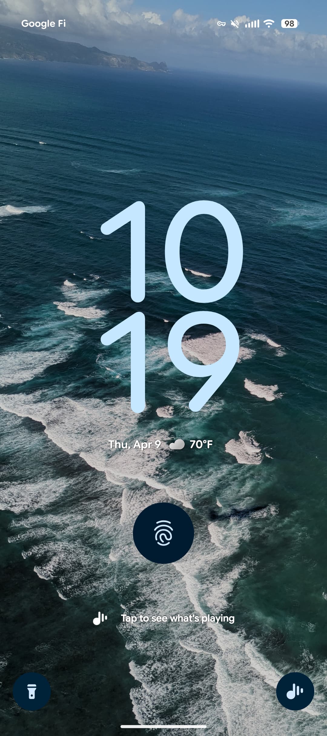 “Tap to see what’s playing” accompanied by the new icon is now back underneath the fingerprint icon. After tapping, the system microphone indicator appears along with “Identifying song…”