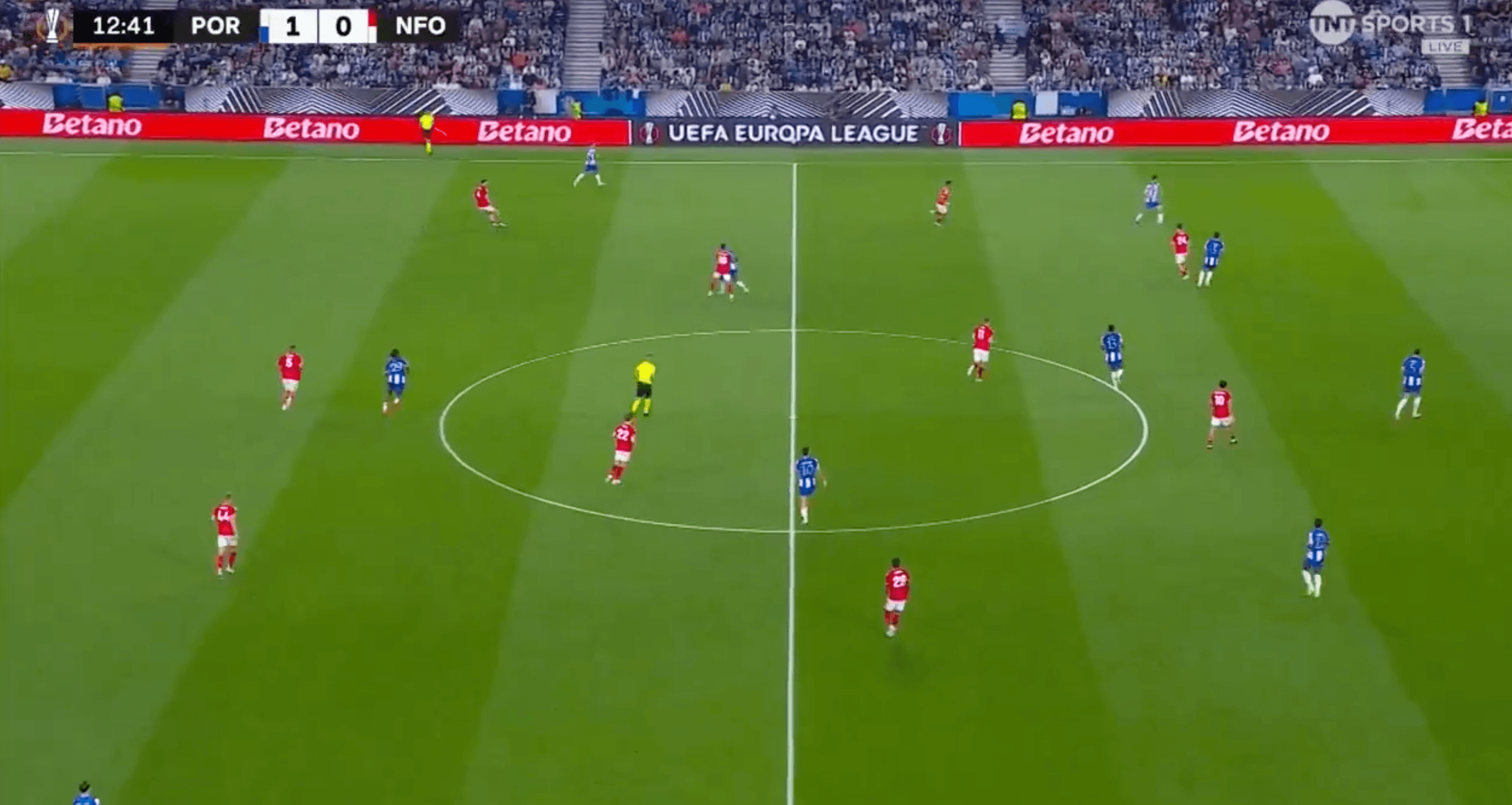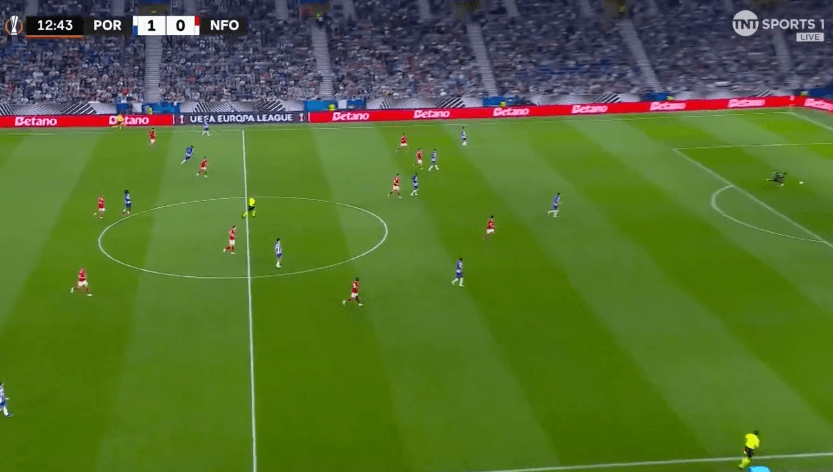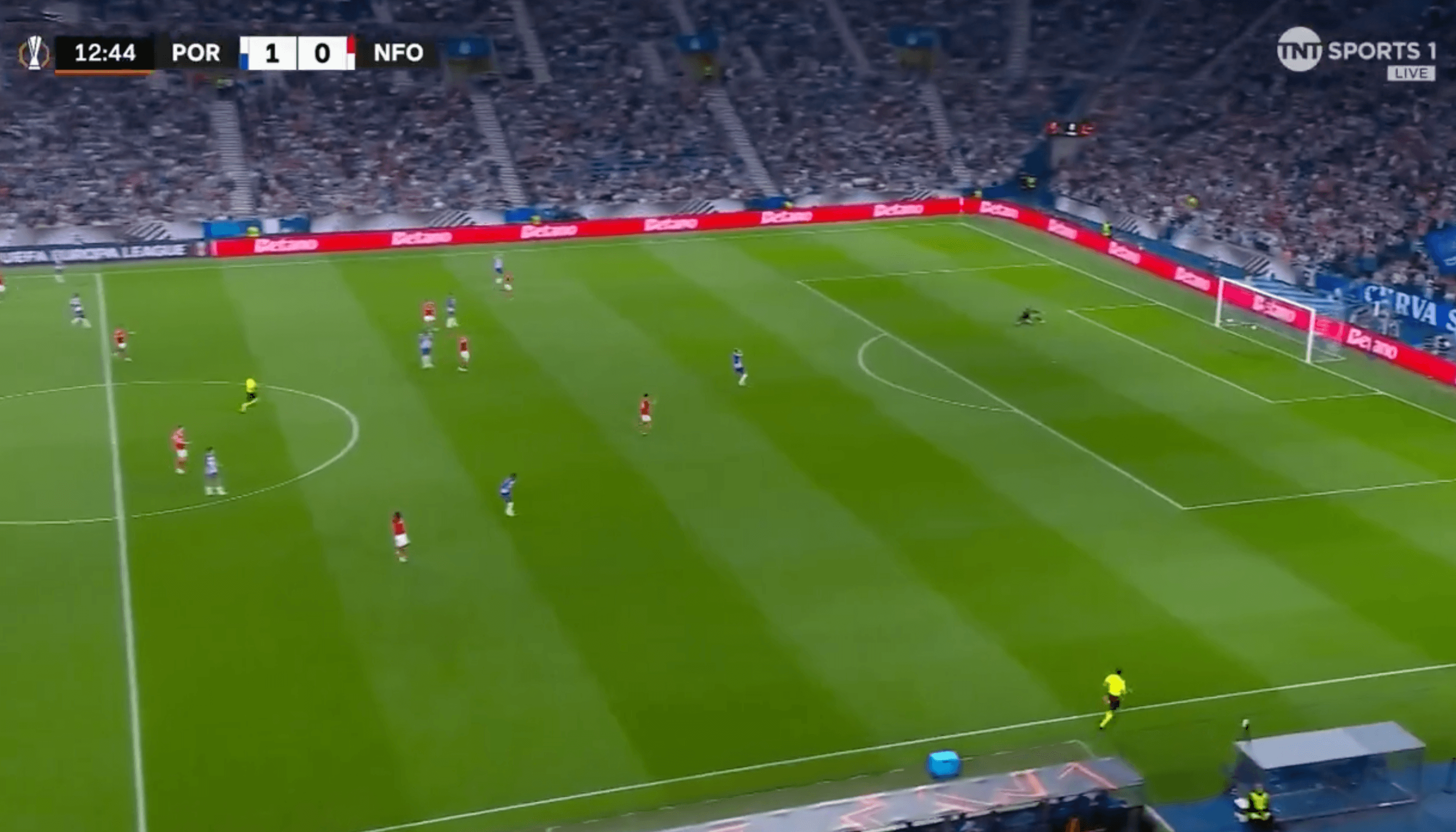 But then came a short period that turned the evening for Fernandes. The 20-year-old found himself under moderate pressure in the right-back position and so turned to sweep the ball back towards his goalkeeper…