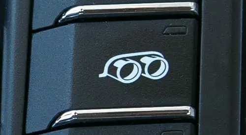 This kind of exhaust-loudener system is not uncommon on many cars today, ranging from Jaguar F-Types to Mustangs to Porsches, and almost all are activated with a button that resembles a pair of binoculars: