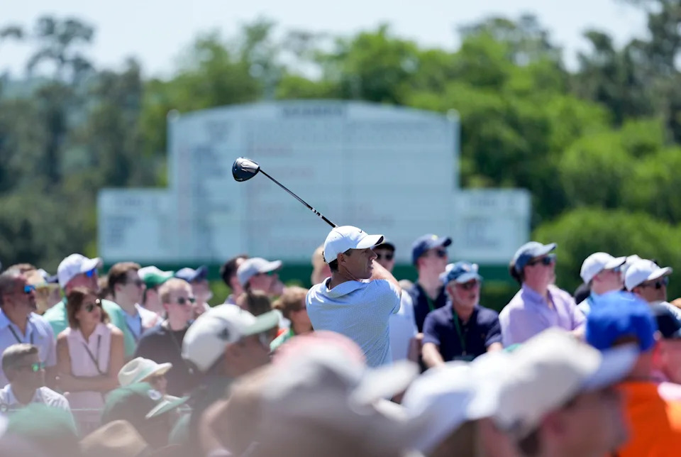 Rory McIlroy of Northern Ireland plays his shot from the sixth tee during the second round of the 2026 Masters Tournament at Augusta National Golf Club on April 10, 2026, in Augusta, Georgia.