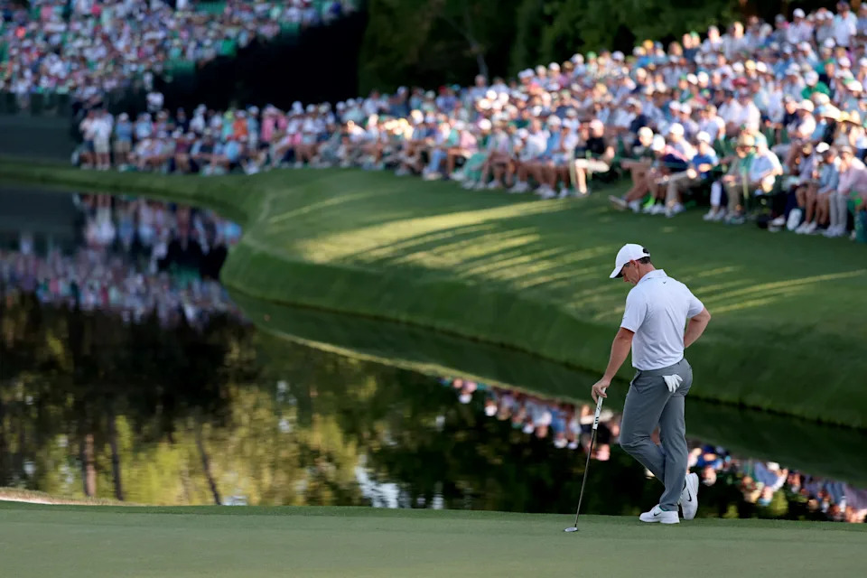 Rory McIlroy looks on from the sixteenth green during the second round of the Masters Tournament at Augusta National Golf Club.
