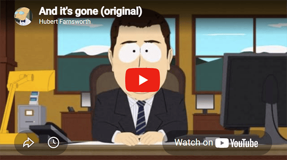 If you listen to the clip carefully (and I know a lot of you financially savvy readers caught on to this), Stan’s money was in a money market fund. Only the earnings were invested quickly into foreign currency, so there’s no way that the principal in the money market fund would suddenly be gone. Someone tell Trey Parker and Matt Stone!