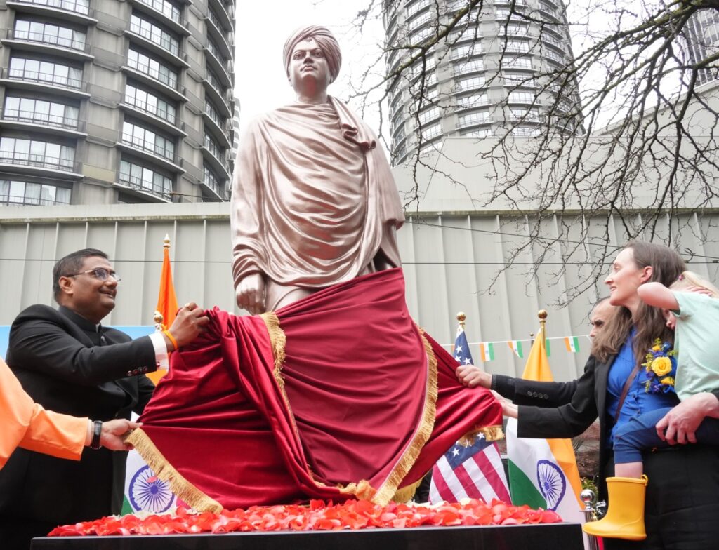 The City of Seattle has become the first city government in the United States to host a life-size statue of Swami Vivekananda at Westlake Square in downtown Seattle. The life-size bronze statue was jointly unveiled on April 11 by Seattle Mayor Katie Wilson and India’s Consul General in Seattle, Prakash Gupta.