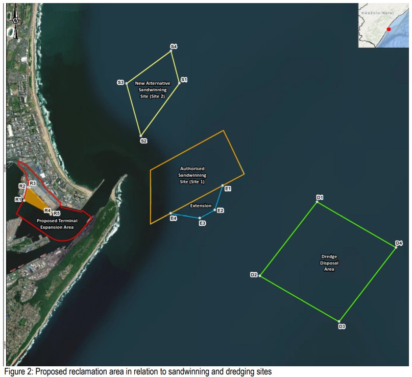 Transnet National Ports Authority is seeking approval to reclaim over 22 hectares of land within the Port of Durban, between the existing Point multi-purpose terminal quay wall and a proposed new Point Container Terminal quay wall.